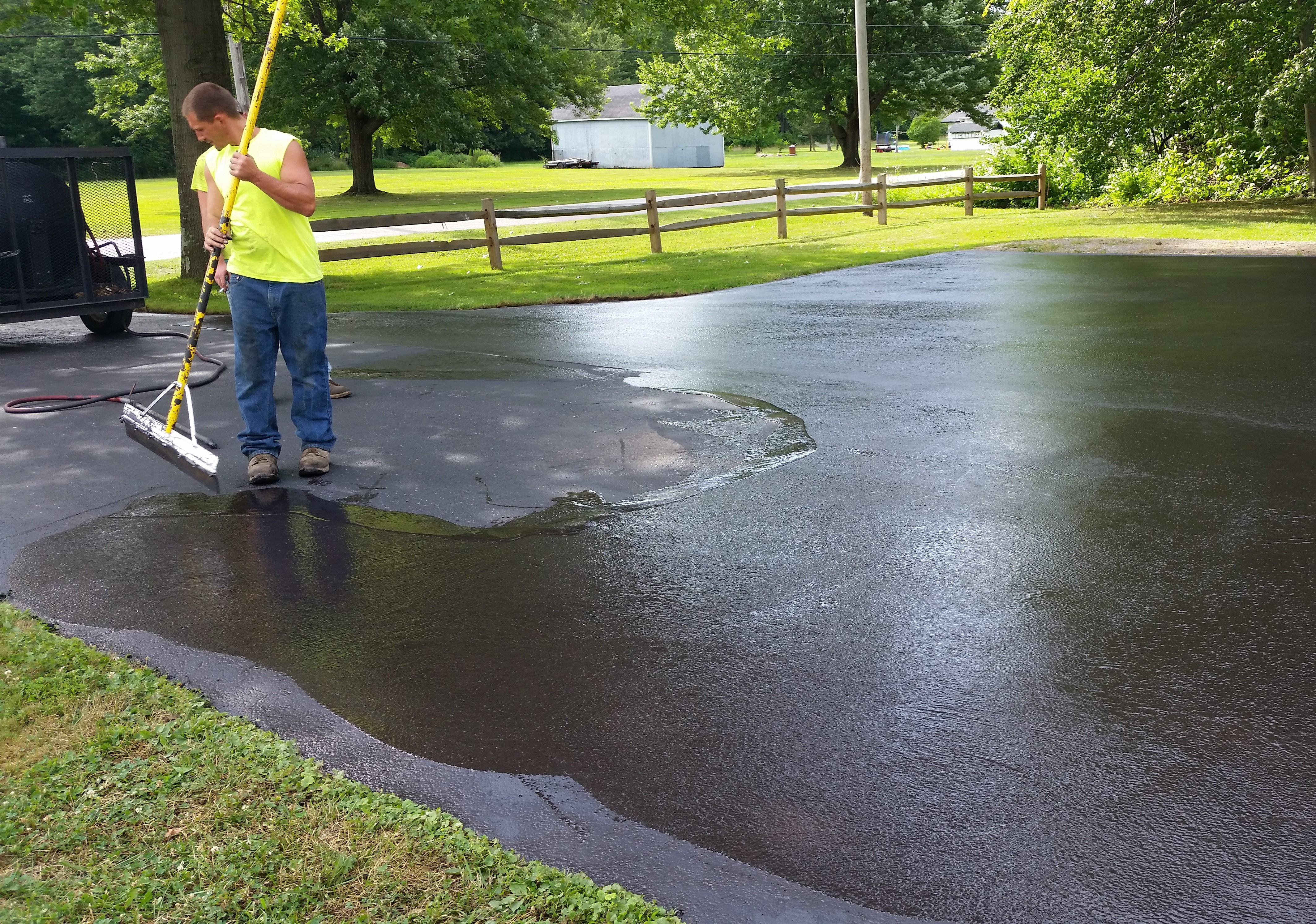 Sealcoating is a protective maintenance treatment that helps your asphalt last longer and look like new. A fresh coat seals the surface against sun damage, water penetration, oil and gas spills, and everyday wear that can lead to cracking and potholes. It also restores that deep black finish, boosting curb appeal for homes and businesses while making the pavement easier to clean and maintain. When applied at the right time and with proper surface prep, sealcoating is one of the most cost-effective ways to protect your investment and extend the life of your pavement.